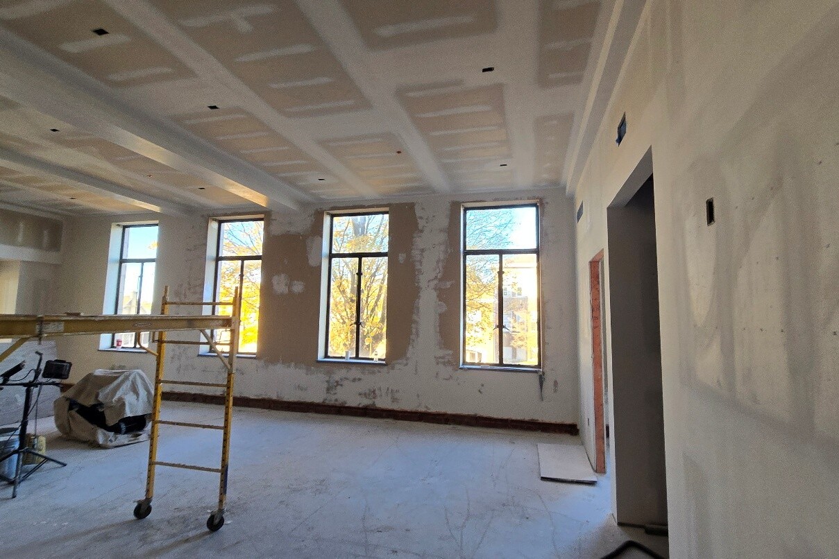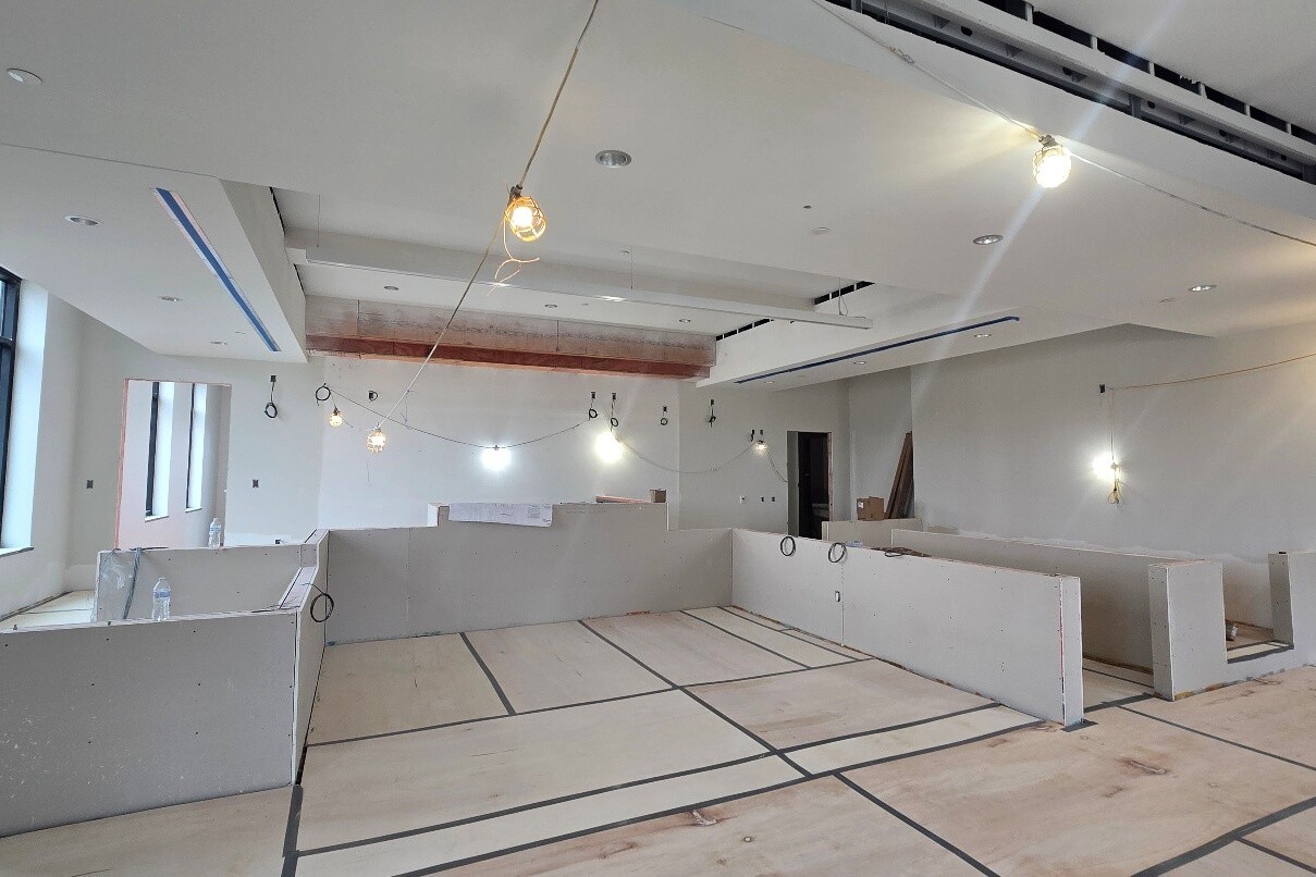 Following demolition, RH Contracting performed the repair and replacement of all remaining plaster and drywall systems throughout the facility. Our team brought a specialized skill set in historic plaster restoration, allowing the original construction to integrate seamlessly with modern office layouts while maintaining architectural integrity.